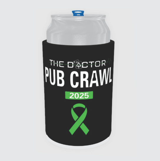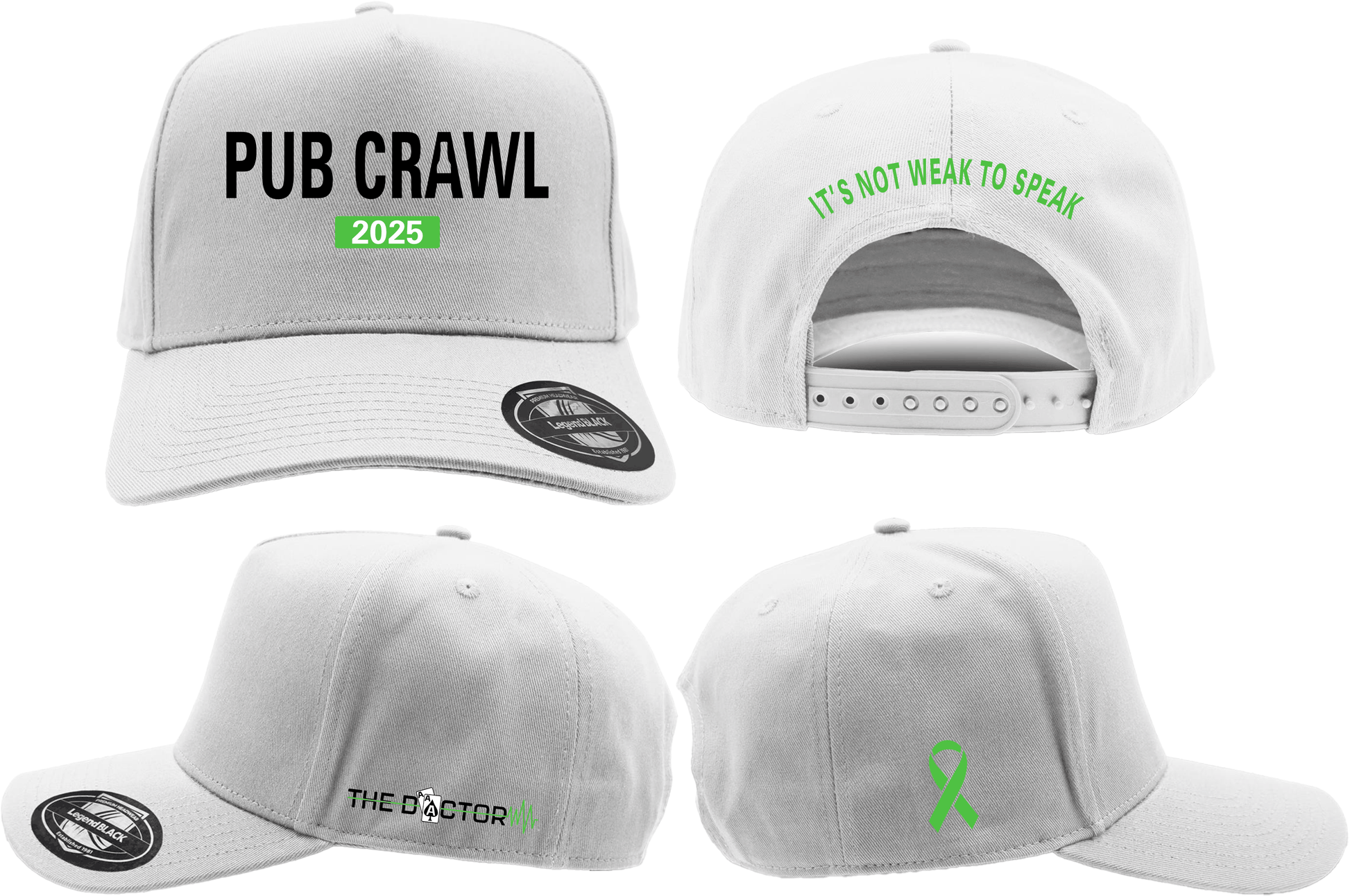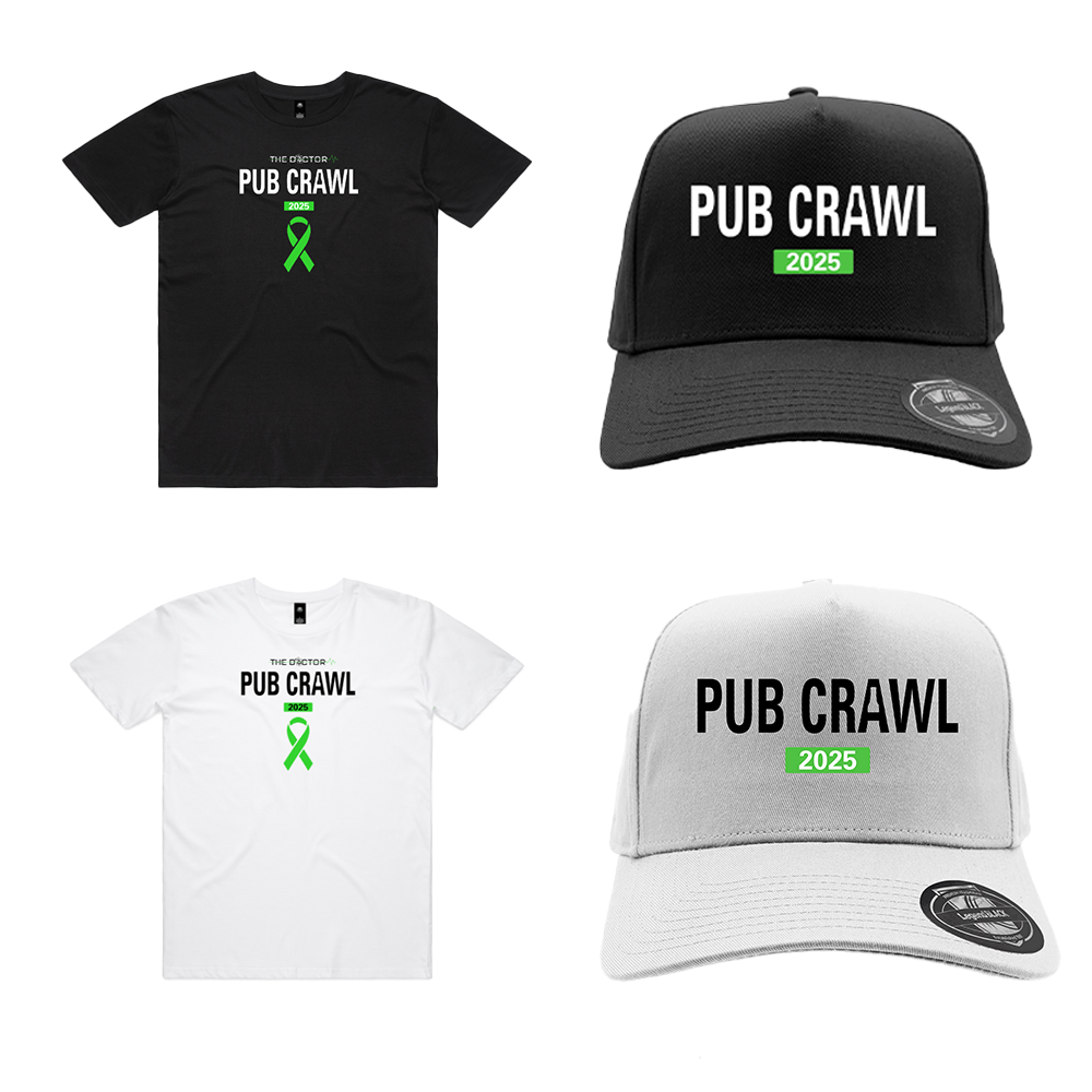 Exclusive TheDoctor pub crawl merch, including a t-shirt, hat and can cooler.